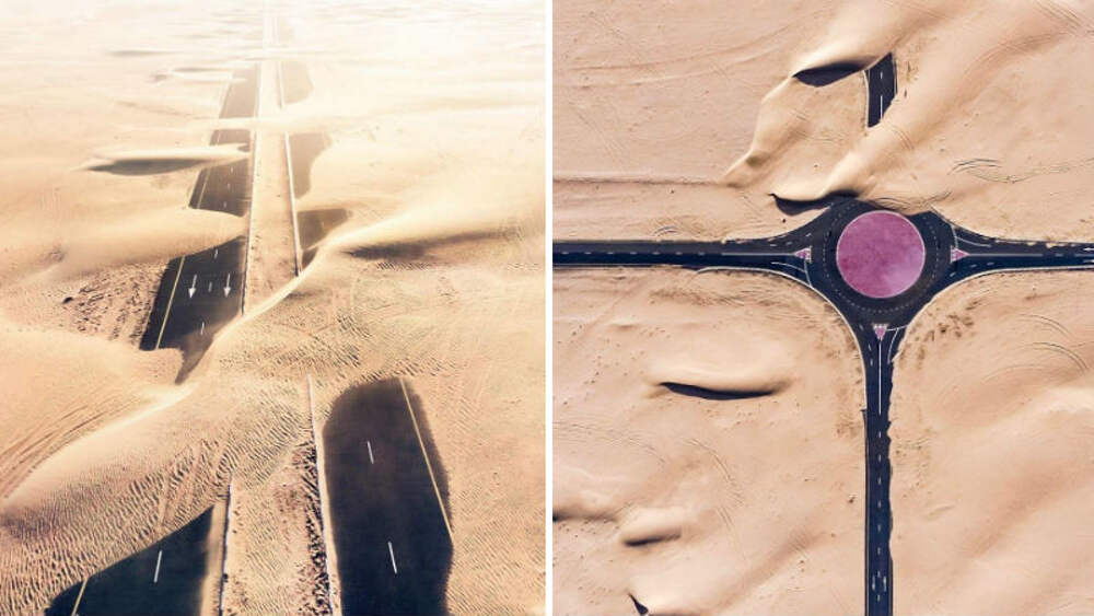Природа против человека: фотограф заснял с дрона, как пустыня пожирает Дубай и Абу-Даби