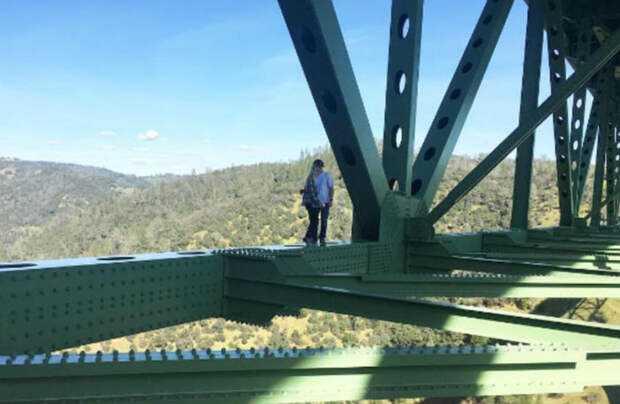 4 апреля в Калифорнии женщина упала с самого высокого в штате моста Форестхилл, пытаясь сделать селфи. К счастью, она выжила, но в инстаграме еще много смельчаков, которые фотографируются, стоя на балках моста, несмотря на штрафы и предупреждающие знаки. Мост находится на высоте 220 метров от земли, проход под ним закрыт для посещения.