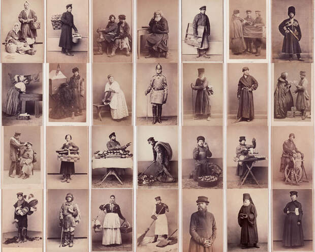 Начиная с 60-х годов девятнадцатого столетия несколько фотографов из Москвы и Санкт-Петербурга работали над созданием фотографической серии «Русских типы»: портретов крестьян, рабочих горожан, ремесленников, уличных торговцев и так далее. В России эти снимки не пользовались популярностью и коммерческим успехом, поэтому предназначались главным образом для туристического рынка, на экспорт.