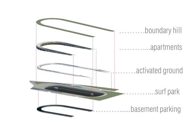 Помимо волнового бассейна, в комплексе на площади в 3000 кв. метров будут оборудованы жилые апартаменты, 6500 кв. метров займет рынок. Отдельное место выделят для зала футбольной славы с экспонатами и художественными инсталляциями, посвященными истории австралийского футбола. 12 800 кв. метров будет отведено для парка Hill.