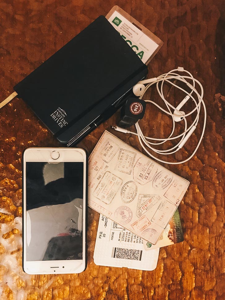 Мой день состоит из череды встреч, съемок и работы с ноутбуком. С собой беру только самое необходимое: телефон, проездной и банковскую карту, ключи от дома и бумажник с наличными (на всякий пожарный). Паспорт практически никогда с собой не беру — боюсь потерять. Уже были прецеденты.