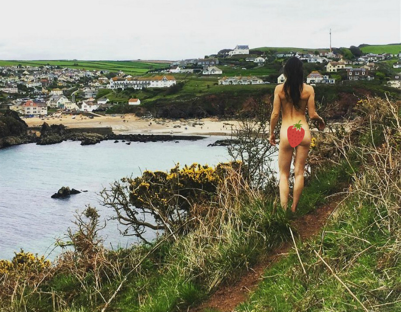 «Вы представить себе не можете, какое количество людей проходит здесь туда-сюда и как мало времени у нас было для фото», — сделала подпись к снимку женщина, оголившая зад у знаменитых известняковых скальных ворот Дердл-Дор на Юрском побережье Британии (смотрите ниже на фото).