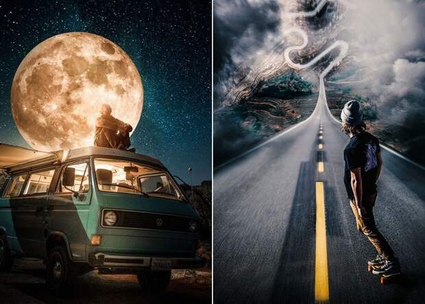 Когда талантливому индонезийцу по имени Рама Кришна Мукти Ади (Rama Krisna Mukthi Adi), было всего 15 лет, он решил стать виртуозом фотошопа. Соединяя в фоторедакторе собственные фотоработы и стоковые снимки, он создает невероятные миры и реализует невероятные фантазии.