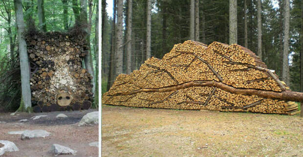 Можно ли укладку дров назвать своеобразной формой искусства? Оказывается, можно. Потому что на свете есть такие люди, которые аккуратно выкладывают с помощью бревен красивые картины. Жаль, что эти произведения будут постепенно исчезать в течение холодных зимних месяцев.