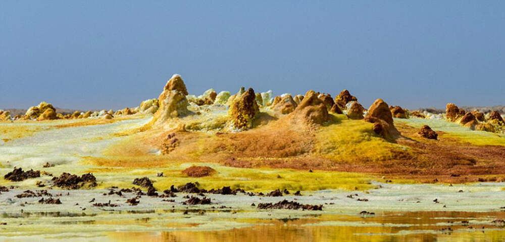 Рабочим соляных шахт в Эфиопии не позавидуешь: они вынуждены трудиться при 50 градусах Цельсия за среднюю плату в 6,5 долларов в день. Это самое жаркое рабочее место на земле. Соляные шахты находятся в Афарской котловине и простираются на 155 тысяч квадратных километров. В самой нижней точке они